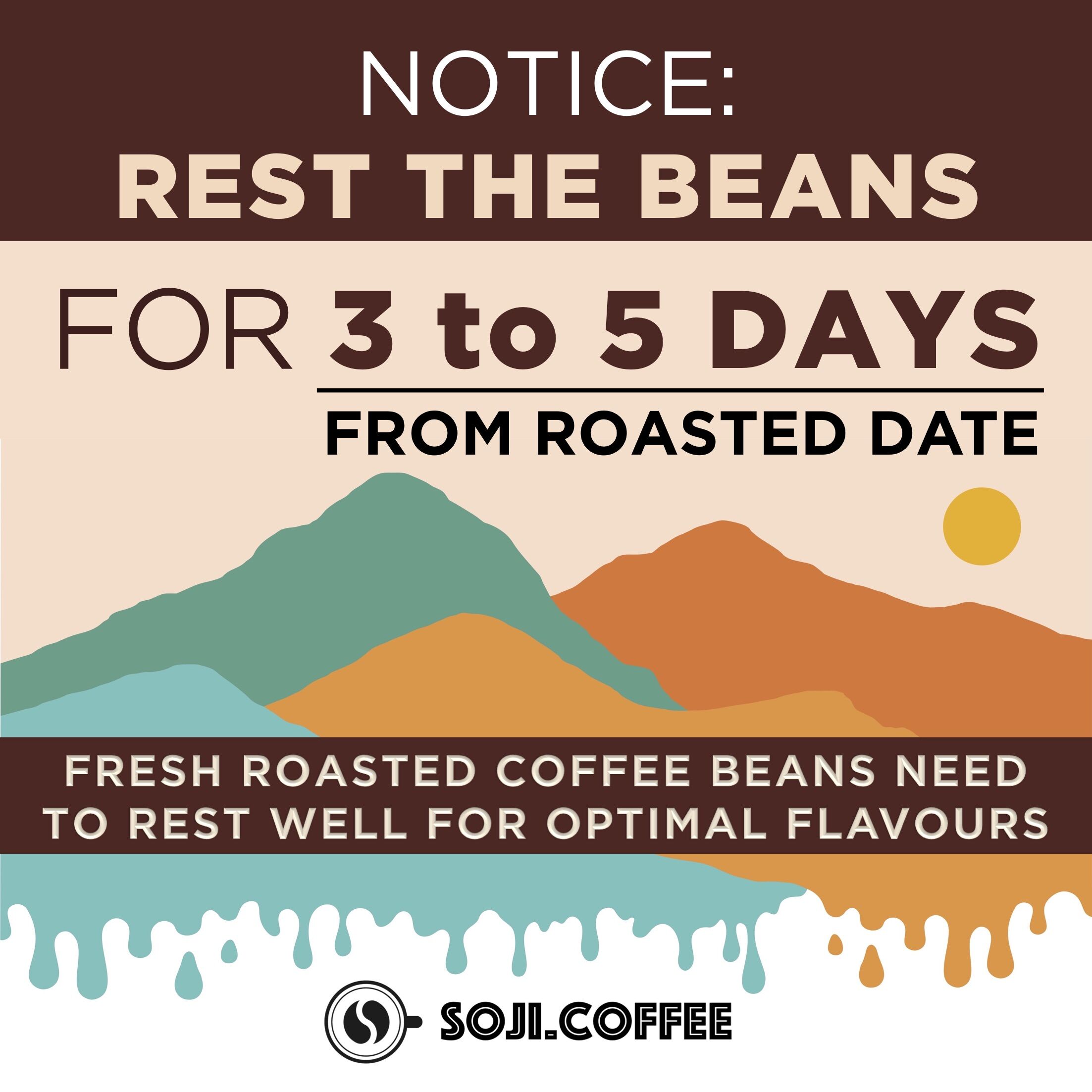 *RECOMMENDED TO REST BEANS : 3 – 5 DAYS FROM ROAST DATE.
